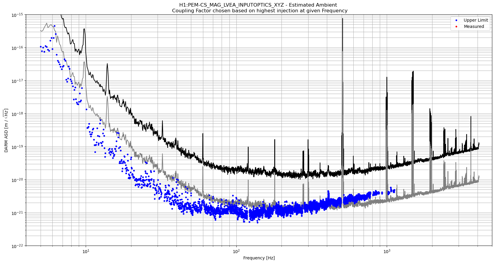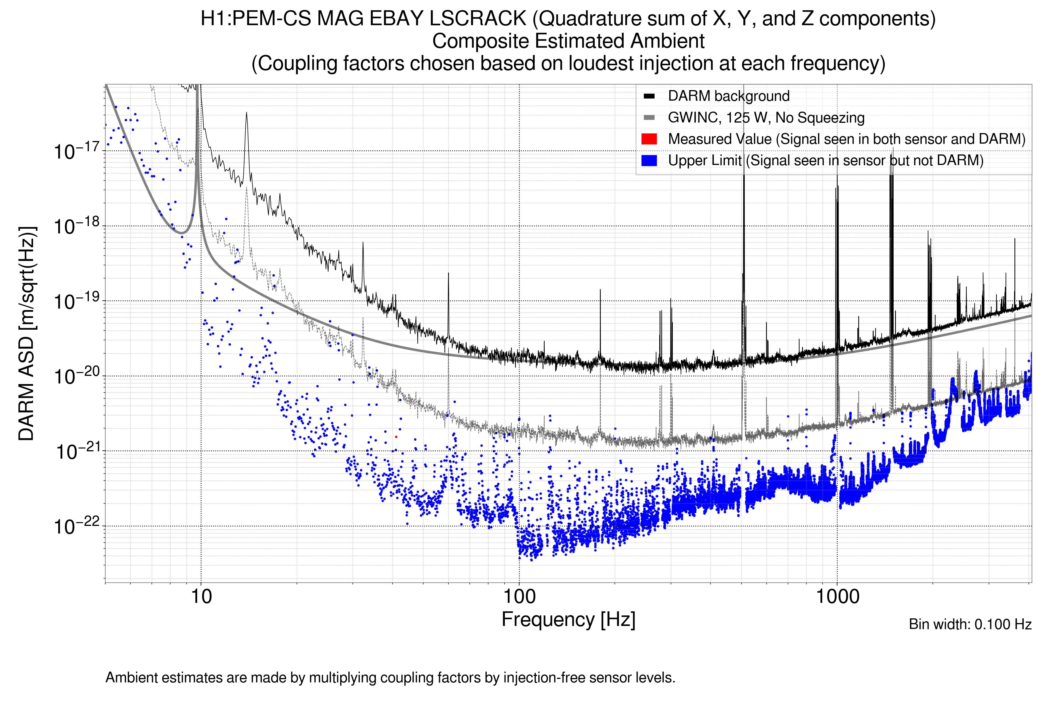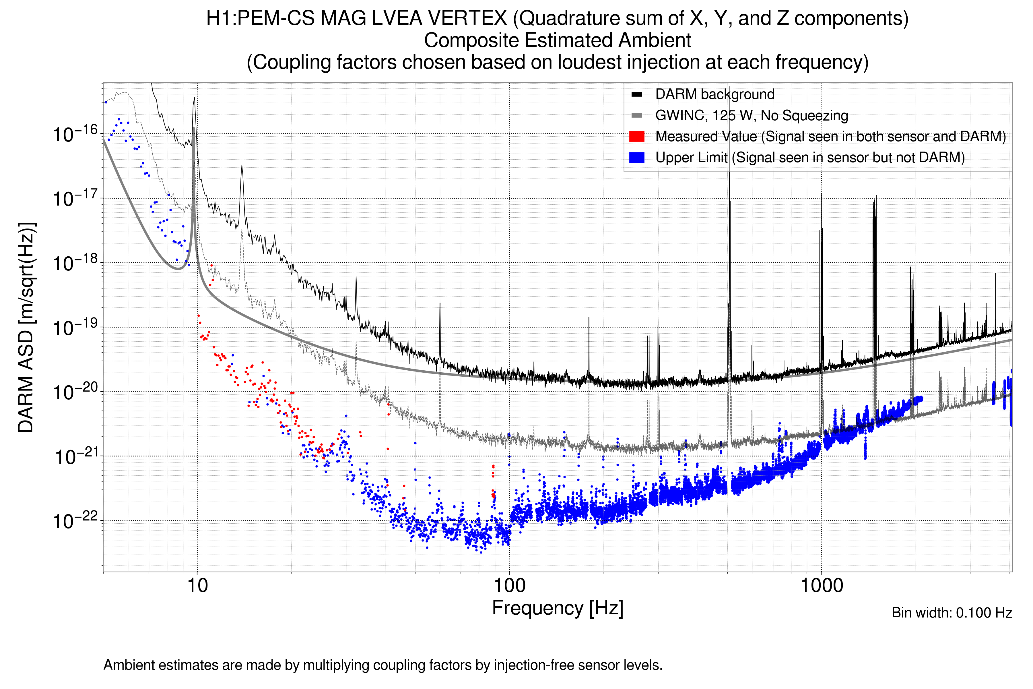 Ambient is the ambient sensor contribution to DARM in m/sqrt(Hz)